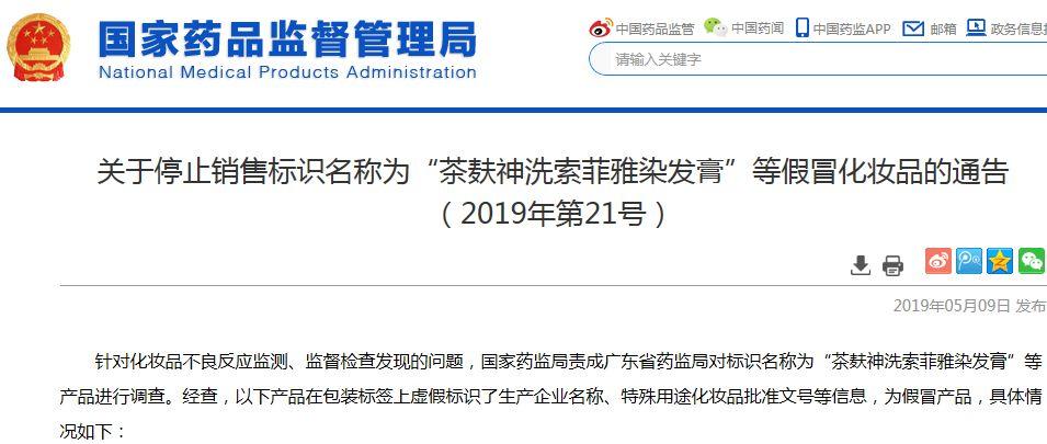 針對化妝品不良反應監(jiān)測、監(jiān)督檢查發(fā)現(xiàn)的問題,藥監(jiān)局責成廣東省藥監(jiān)局對標識名稱為“茶麩神洗索菲雅染發(fā)膏”等產(chǎn)品進行調查。經(jīng)查,相關產(chǎn)品在包裝標簽上虛假標識了生產(chǎn)企業(yè)名稱、特殊用途化妝品批準文號等信息。