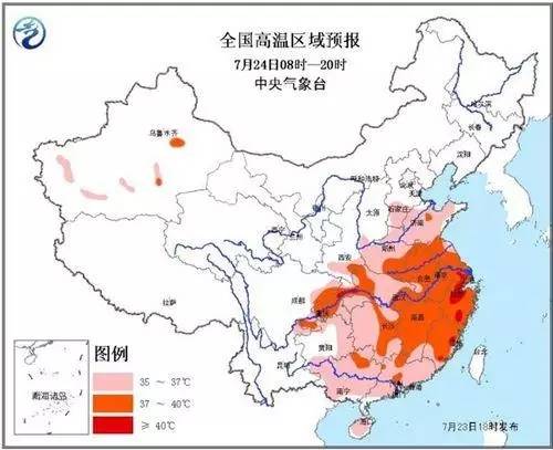 中央氣象臺發(fā)高溫橙色預警中央氣象臺7月23日18時繼續(xù)發(fā)布高溫橙色預警:預計24日白天,華北東南部、黃淮、江淮、江漢、陜西南部、四川盆地東部、重慶、貴州北部和東部、江南、華南等地有35~37℃的高溫天氣,其中,黃淮南部、江淮、江南中東部、江漢西部和東南部、重慶及華南北部等地高氣溫超過37℃,局地可超過40℃。