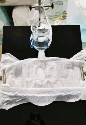 測(cè)試方法:將紙尿褲平鋪在測(cè)試臺(tái)上,底下墊一張濾紙,在紙尿褲中心放液60mL,觀察紙尿褲防側(cè)漏護(hù)圍是否能兜住尿液,防止其流出紙尿褲。