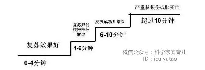 當兒童處于危難時,為緊急的就是保持或恢復兒童的呼吸和心跳,這樣才能大限度的保持兒童的生命。在保持生命的過程中,爭分奪秒是關(guān)鍵的關(guān)鍵。因為一旦呼吸心跳停止對人體的影響與分秒相關(guān)(見下圖1)。