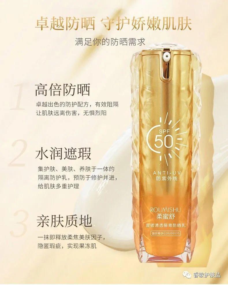柔蜜舒清透隔離防曬乳:含防曬指數(shù)SPF50,高倍真防曬指數(shù),有效抵御日曬紫外線(xiàn)輻射,肌膚的隱形防曬衣,防紫外線(xiàn),隔斷紫外線(xiàn),防日曬,質(zhì)地輕盈,貼合肌膚,隔離環(huán)境污染物,減少外界對(duì)肌膚的傷害,給肌膚形成保護(hù)屏障!