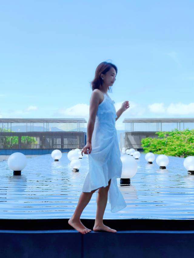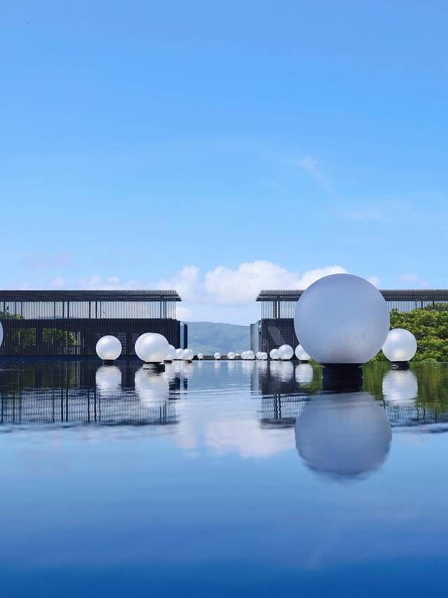 酒店自帶的園林與泳池與周邊這絕美的風(fēng)光特別搭,時(shí)光穿過(guò)間隙,投落到院子里,樹(shù)影斑駁。這里的椰子樹(shù)與精致的擺設(shè),像一個(gè)個(gè)老者挺直駐守著,不因時(shí)光風(fēng)雨更改意向。