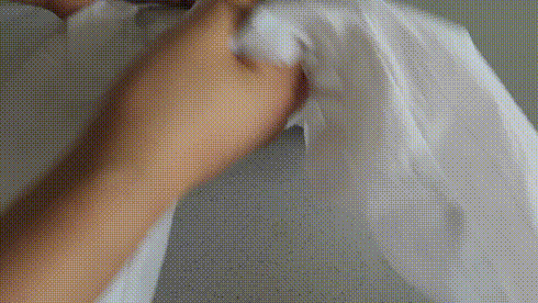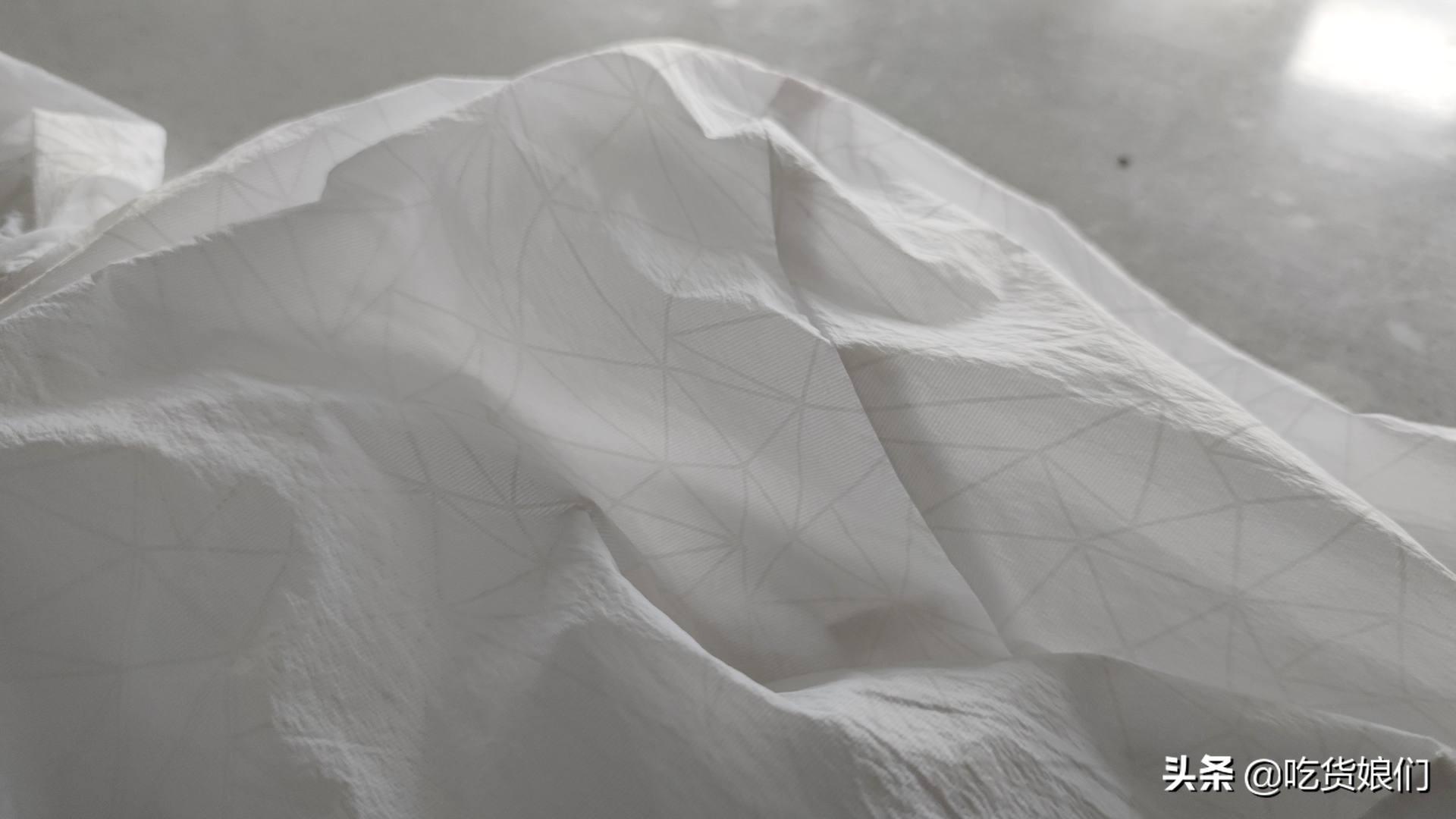 fooxmet這款防曬面料很輕,摸著比較柔軟舒適,穿上會(huì)覺得沒啥負(fù)擔(dān)。透著光,我們也能看到衣服上的紫外線顯示條紋。