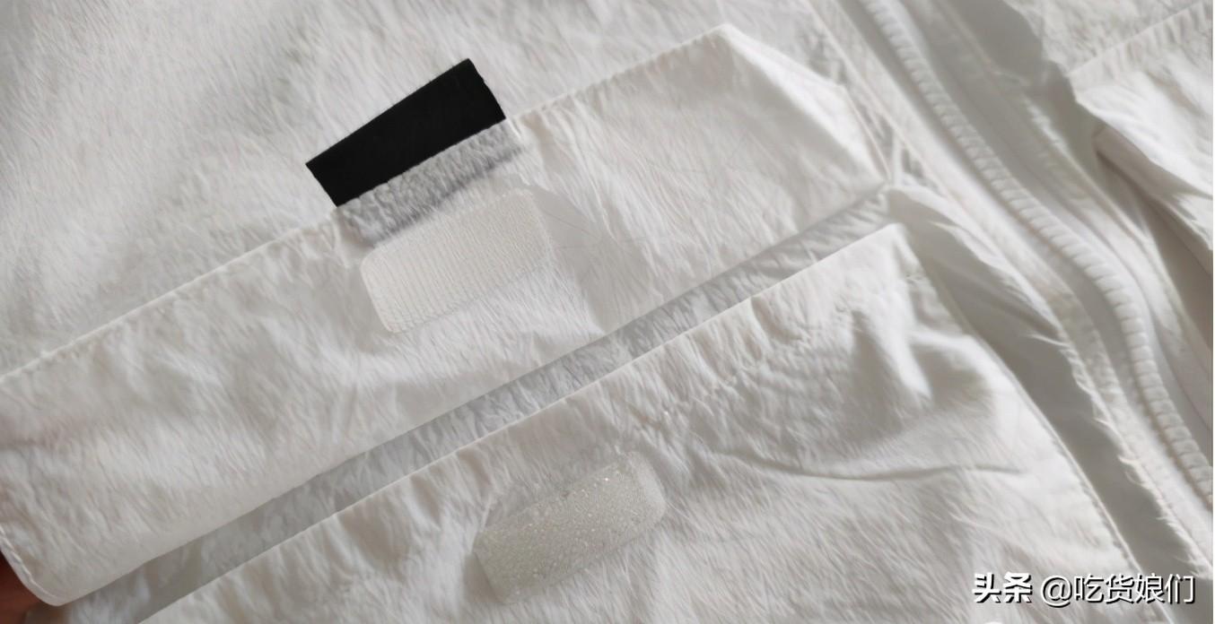 此外,你會(huì)發(fā)現(xiàn)口袋采用了魔術(shù)貼設(shè)計(jì),這個(gè)還挺好的,如果只是帶個(gè)手機(jī)啥的小物件,方便,就算跑步啥的也。