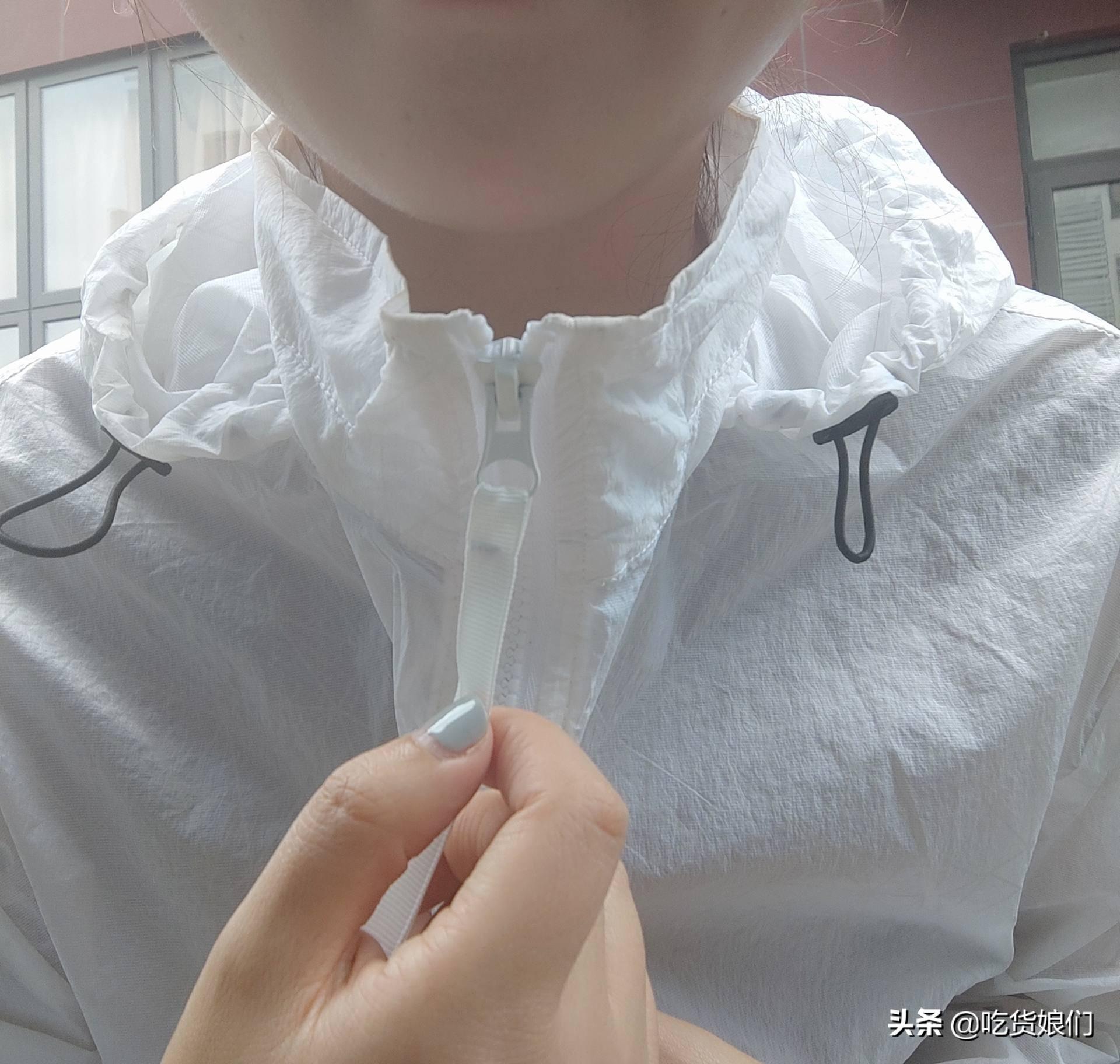 底下的拉鏈可以一下子拉到下巴處,保護(hù)脖子,可能除了臉和手,上半身都不會(huì)有露出。
