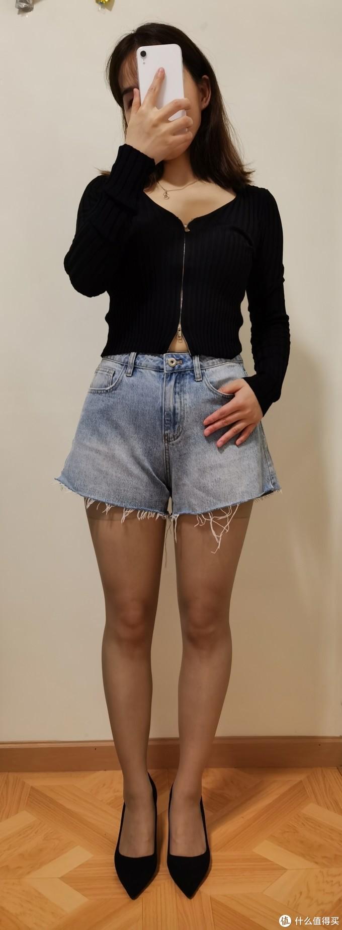 它搭配黑色的連衣裙、皮裙、牛仔短褲都還挺好看,它是T襠的設計,樓主52kg,雖然不是很胖,但是穿著時大腿處還是稍微有點緊,所以這款不太建議胖mm入。