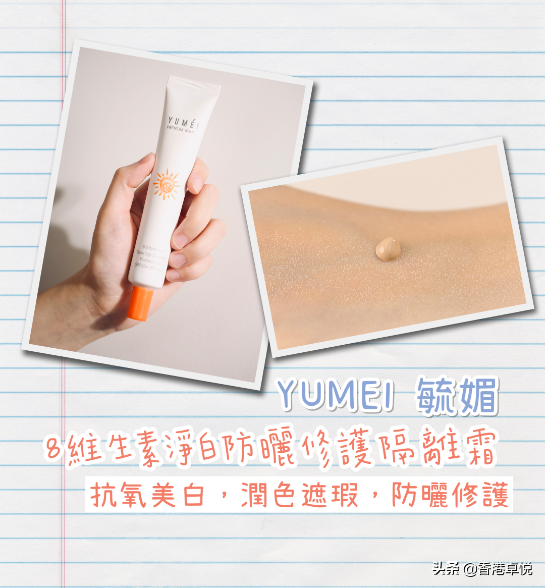SPF50/PA+++防曬指數(shù),為肌膚提供一整天的抗曬防護(hù)。防水防汗、色澤自然,可作妝前底霜或裸妝使用,修飾微瑕及斑點(diǎn)。蘊(yùn)含8種豐富護(hù)膚維生素,包括維生素B3, B5, B6, B9, C, E及H,為肌膚提供抗氧化、滋潤(rùn)、保濕、舒緩等功效。有效改良色斑及均勻膚色,減淡斑紋、改良膚質(zhì),防曬、護(hù)膚,美白,三效合一。