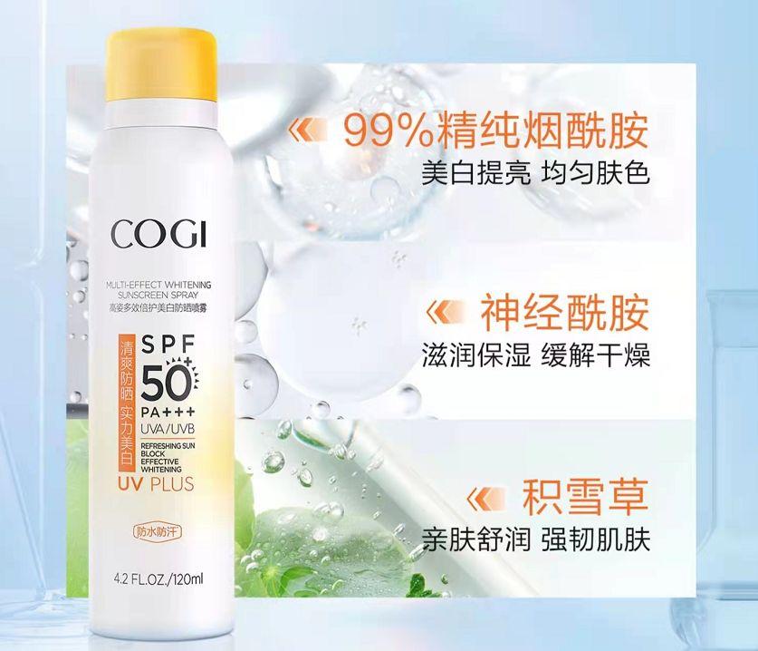 高姿美白防曬噴霧這兩個值分別為SPF50+ , PA+++,具有較高的抗曬能力,解決消費者需求痛點。