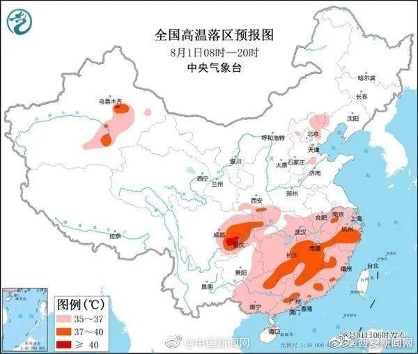 預(yù)計(jì)8月1日白天,新疆南疆盆地、陜西南部、湖北、江南、華南、四川東部、重慶等地有35℃以上高溫天氣,其中,新疆南疆盆地、湖南東部、江西、浙江南部、福建西部、四川東部、重慶西部、廣西東北部、廣東中北部等地部分地區(qū)高氣溫37~39℃,四川東南部、重慶西南部等地局地可達(dá)40℃以上。