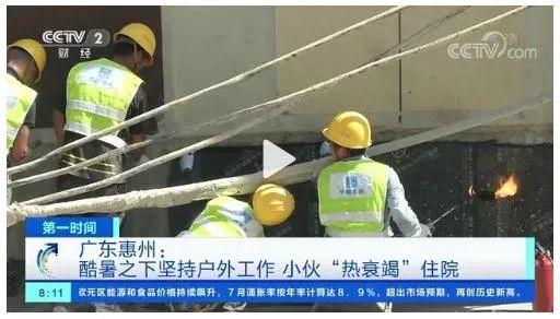 廣東惠州一名二十多歲在工地干活的男子,因長(zhǎng)時(shí)間暴曬出現(xiàn)身體不適,體溫超過(guò)39℃,被緊急送往醫(yī)院。