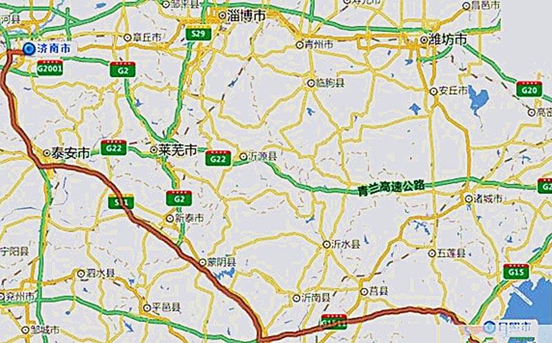 ②濟南東:上高速→G2001東環(huán)城南行→G2京滬(濟萊)→萊蕪杻紐立交右轉(zhuǎn)→萊蕪→新泰→杻紐立交左轉(zhuǎn)→蒙陰→杻紐立交左轉(zhuǎn)→G1511日蘭→東行→日照