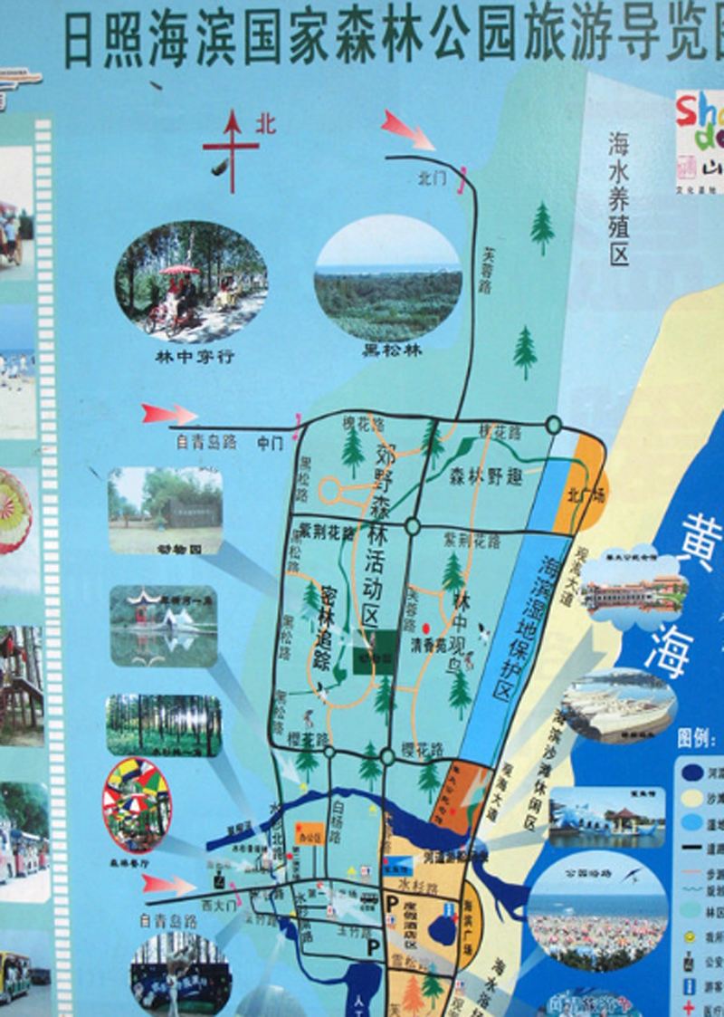 ③路線說明:濟南港溝上高速→濟青南線→長深高速→日東高速(直行到頭就是日照收費站出口)→沈海高速→日照北下高速→直行山海路→左轉(zhuǎn)進青島路(220省道)→右轉(zhuǎn)進森林公園路→到達森林公園西門→南行到達下榻的漁民村。
