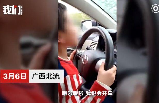 4歲兒子開(kāi)車2歲女兒坐副駕