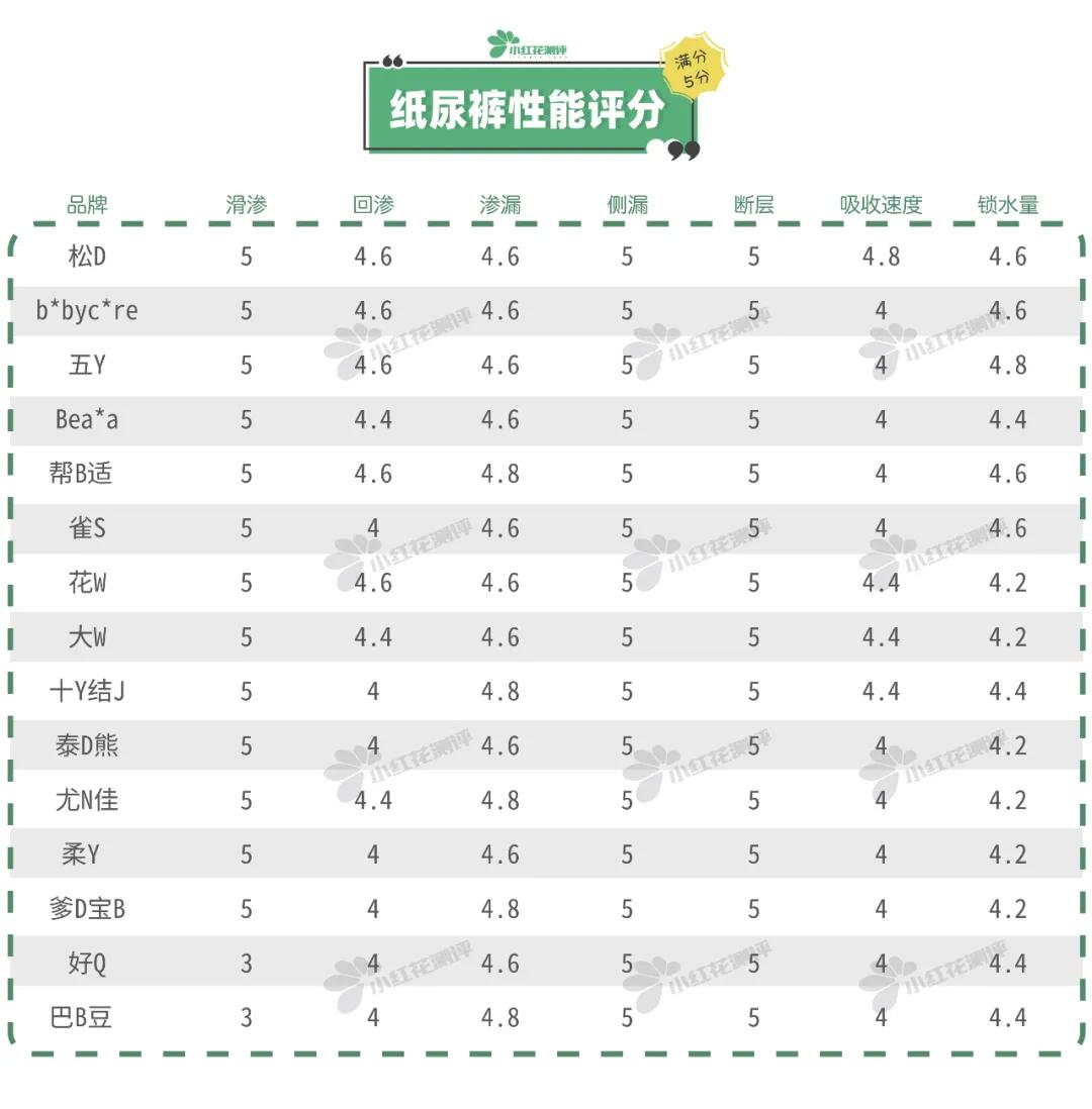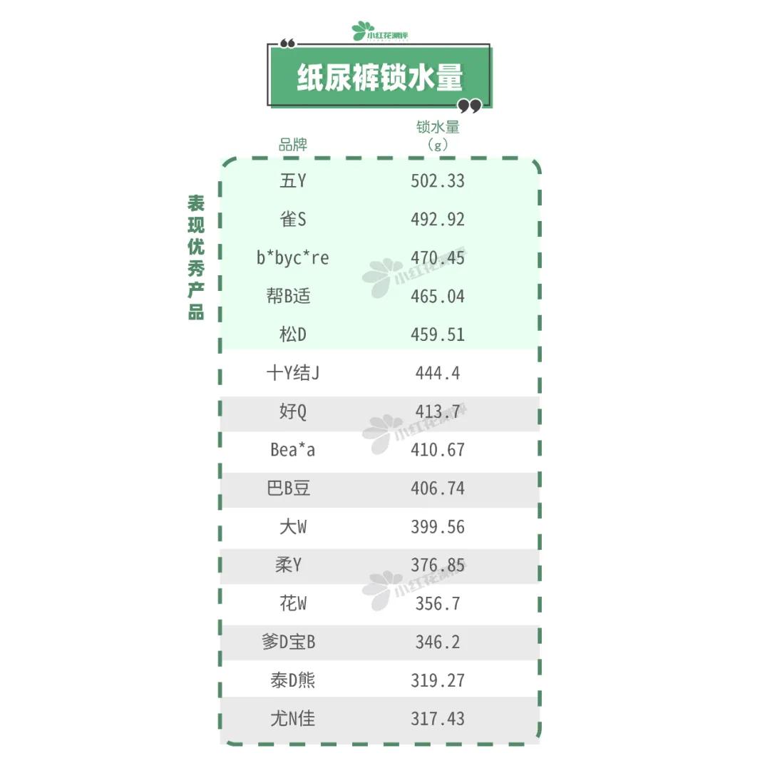 1.五Y、雀S、b*byc*re、幫B適、松D,這5款鎖水量都達(dá)到450g以上,不容易因?yàn)槲漳蛞哼^(guò)多而漏尿,屬于表現(xiàn)產(chǎn)品。