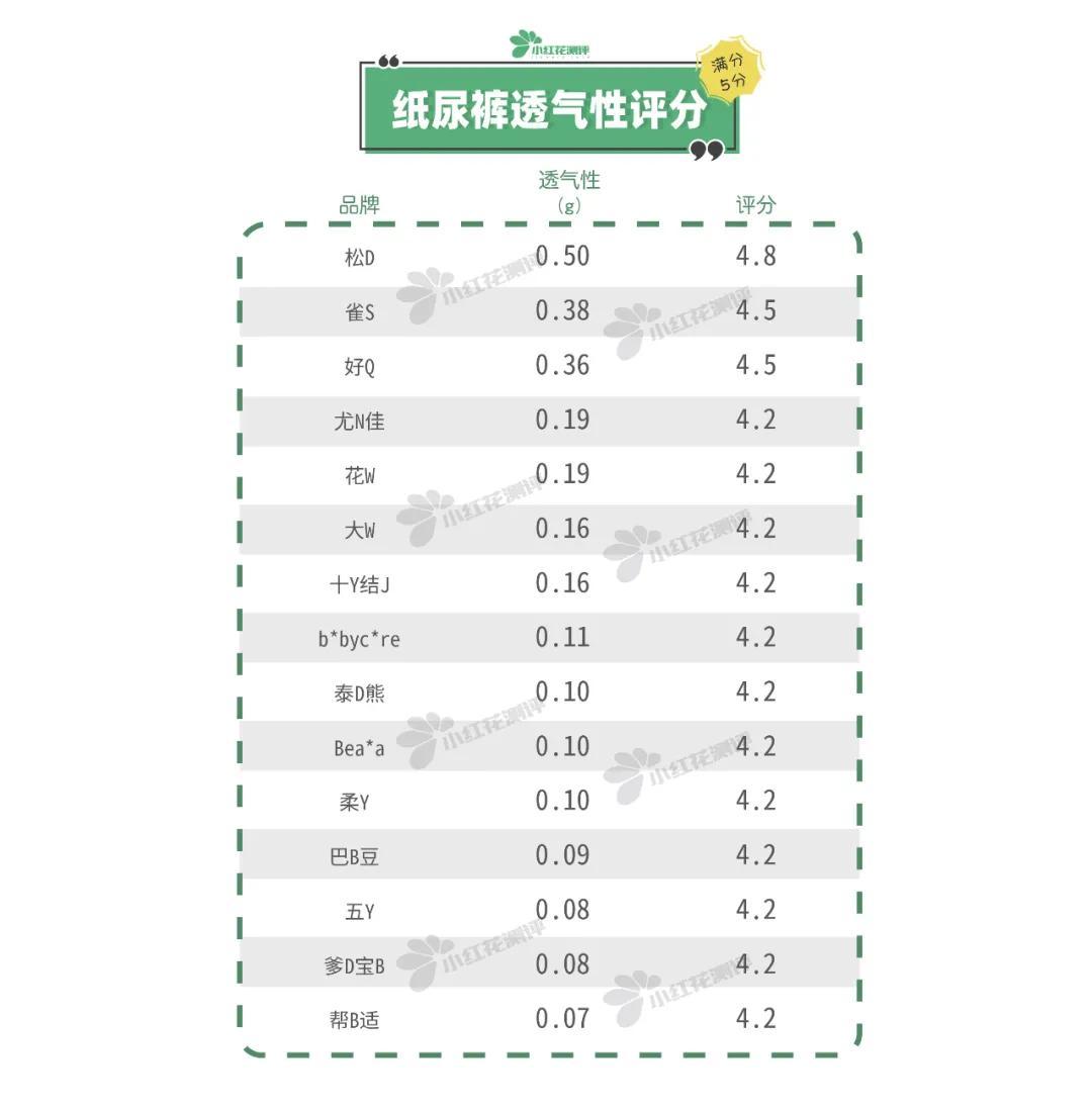 多數(shù)紙尿褲的水蒸氣透過(guò)量都小于0.3g,透氣性較差,長(zhǎng)時(shí)間不替換紙尿褲,可能會(huì)導(dǎo)致寶寶屁屁較悶。