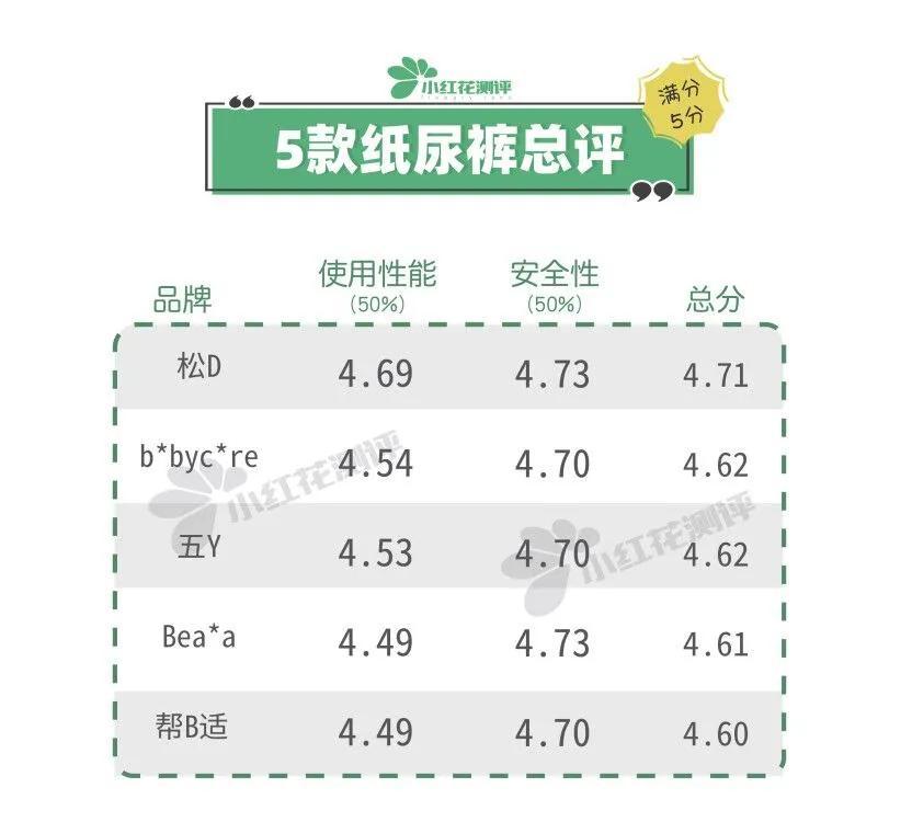 綜上所述,紙尿褲性能評(píng)分如下:
