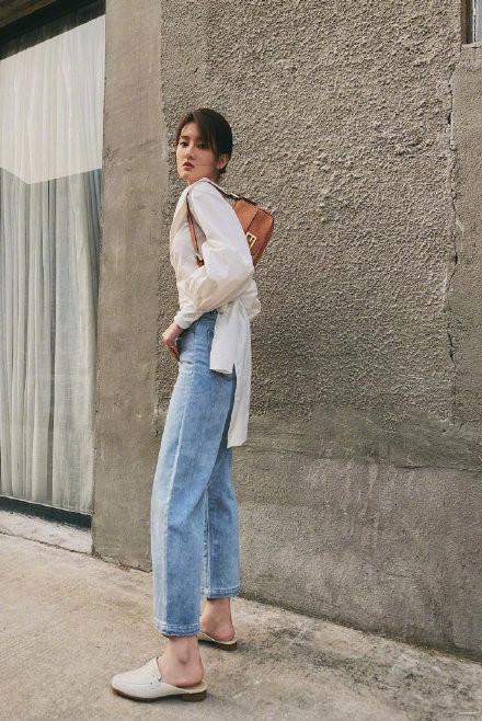 韓系輕熟風(fēng)的穿搭適合25-30歲左右的女孩子,日?;蛘呗殘?chǎng)通勤都可以,氣質(zhì)又淑女,喬欣身穿一件白色泡泡袖襯衣,搭配一條淺藍(lán)色的牛仔蘿卜褲,搭配一個(gè)低馬尾,知性又靚麗,氣質(zhì)真的太好了。泡泡袖襯衣和普通襯衣不同,帶有一種復(fù)古的宮廷感,背上一個(gè)棕色的小方包,簡(jiǎn)單又高級(jí)。