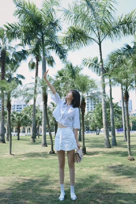 look1 白色鏤空短襯衣+短裙在暖暖的春天,白色是百搭又時(shí)髦的顏色,而且白色給人以清新自然的氣息,女生穿上一身白色會(huì)給人一種清新的初戀感,好看。