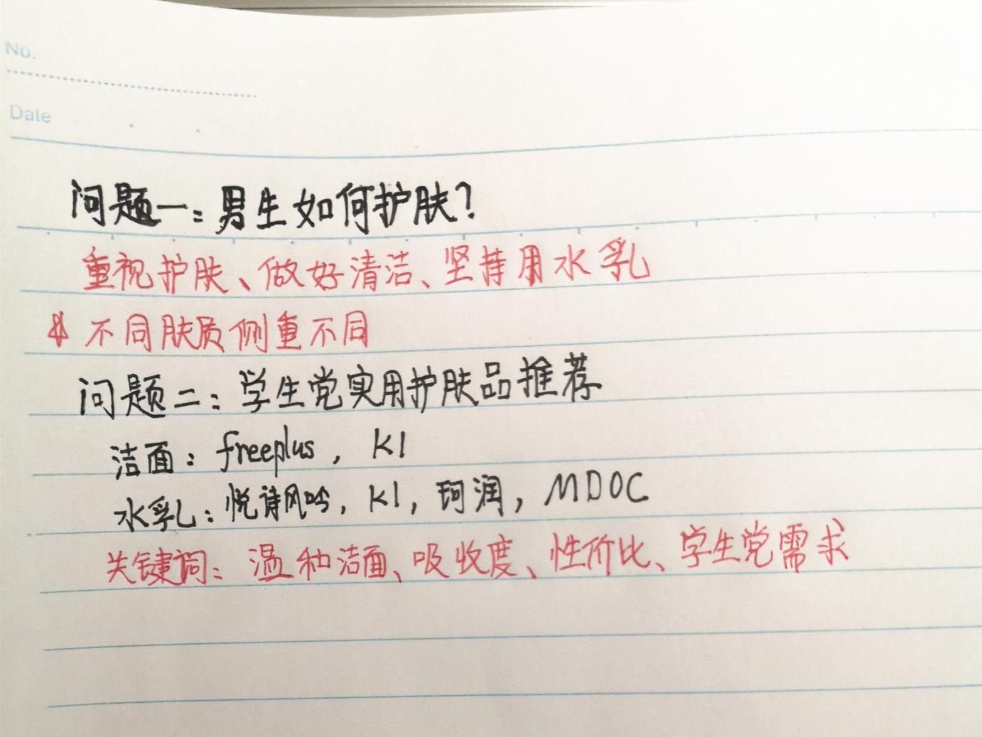 干皮推薦freeplus洗面奶、悅詩風(fēng)吟水乳,油皮混油推薦K1洗面奶、K1水乳、MDOC水乳,敏感肌推薦freeplus洗面奶、珂潤水乳。