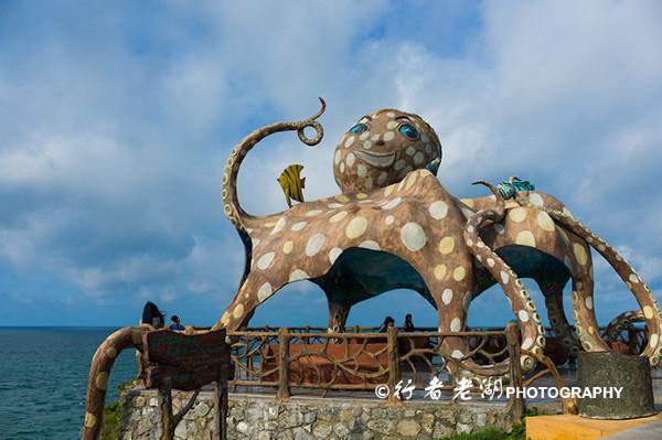 在野菠蘿公園景區(qū),有五彩繽紛的章魚保羅亭,有精致的夜光螺,有巖石”海誓山盟“,靈驗的南海觀音等,讓人流連忘返,更是看夕陽的好去處,當夕陽下,這里幾乎無人,坐在海邊的長椅上吹著海風,享受安靜的自然景觀,真是人生一大樂事。