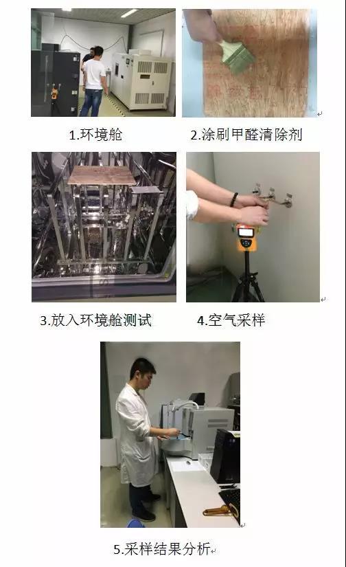 測試方法:模擬消費(fèi)者的實(shí)際使用情況,用兩塊板材做對比實(shí)驗(yàn),一塊涂刷甲醛清除劑,另一塊不涂刷甲醛清除劑,同時(shí)放入1m3的密閉環(huán)境艙內(nèi)檢測環(huán)境艙內(nèi)。