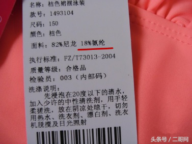無論大人還是孩子,適合的泳衣材質當屬氨綸,標準要求在15%,如果能達到18%-20%說明彈性就足夠好了。記住泳衣也要有防水標,辨別成分的辦法除了拉伸看回彈,就是查看說明。
