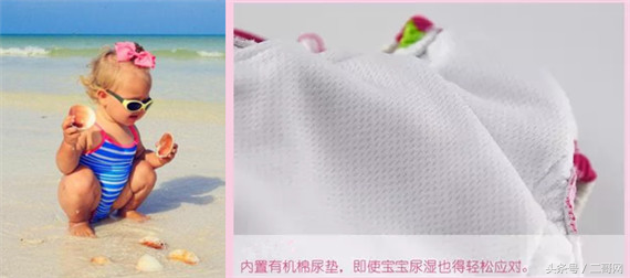 款式要靈活——分齡選購、注意性別寶寶在海里開心的踏著浪花,突然一個寒顫、兩眼放空,OMG,孩子尿褲子了!把紙尿褲放在泳褲里吸水又增重,這個時候就該選擇適合不能自主如廁的小尿娃專利——尿不濕游泳褲。外層防水隔離濕氣和細菌,內(nèi)層設置尿布循環(huán)使用、環(huán)保衛(wèi)生。為了讓孩子更好的適應泳褲,也為了讓媽媽方便穿脫,分體是這個階段孩子(2或3歲以下)該選的款式。