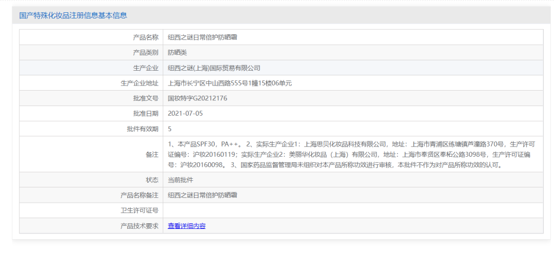 在進(jìn)入藥監(jiān)局平臺(tái)查詢后,發(fā)現(xiàn)該品牌在2021年重新注冊了國妝特字G20212176,產(chǎn)品名稱是日常倍護(hù)防曬霜??梢?,在文章發(fā)布前,該品牌日常倍護(hù)防曬霜的天貓?jiān)斍轫摏]有及時(shí)更新,確實(shí)需要做出相應(yīng)解釋和改進(jìn)。