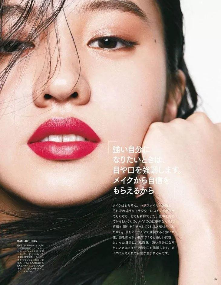 這樣清透自然的妝容應(yīng)該是近幾年的日雜封面必備,它的大特點(diǎn)就是“輕”,沒有高飽和度的色彩也沒有硬朗的線條,妝面就像薄霧一樣籠罩在臉上,改骨相于無形之間。
