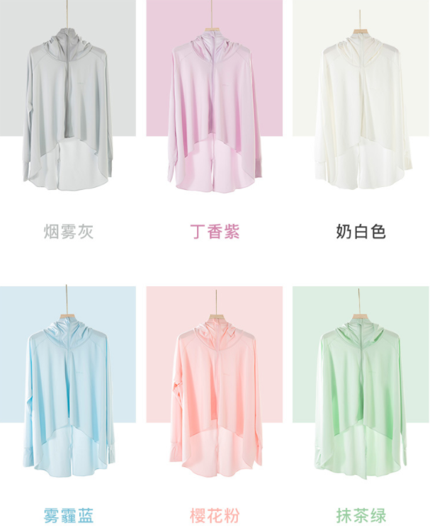 顏色上也有煙霧灰、丁香紫、奶白色、霧霾藍、櫻花粉、抹茶綠6種莫蘭迪色系可選,每一種都清新大方,穿上既防曬又亮眼。