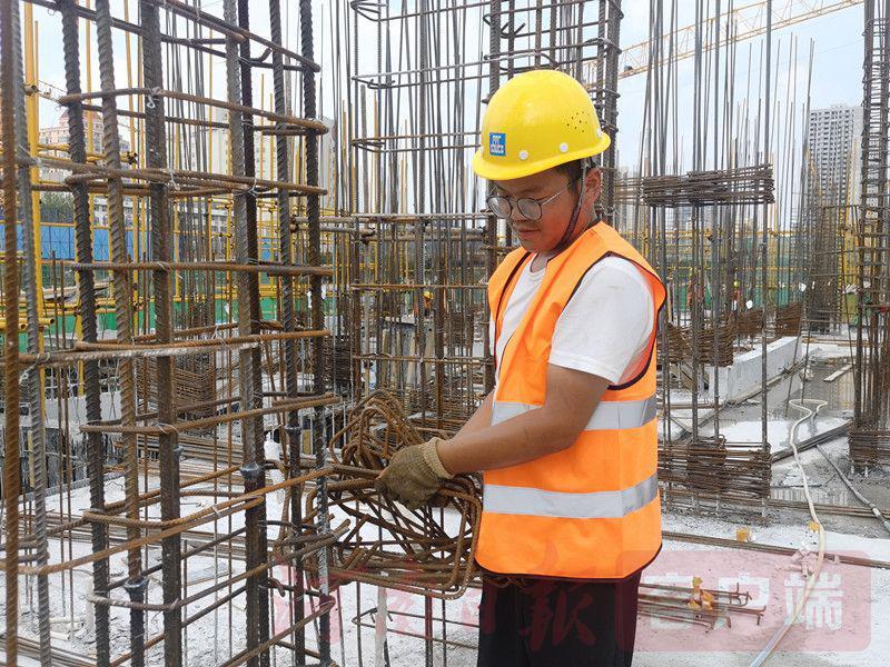 去年從鄭州工業(yè)職業(yè)學(xué)院畢業(yè)、今年3月來到工地工作的胡亞磊在隊里還只是個學(xué)徒。父母在開封種了20畝地,他從小就跟著在地里干活。在開朗樂觀的胡亞磊眼里,鋼筋綁扎這種動動手就能完成的活不算辛苦,七八十斤重的鋼筋他也是扛著就走?!俺弥贻p,多出點力,多學(xué)本事,不吃虧。”
