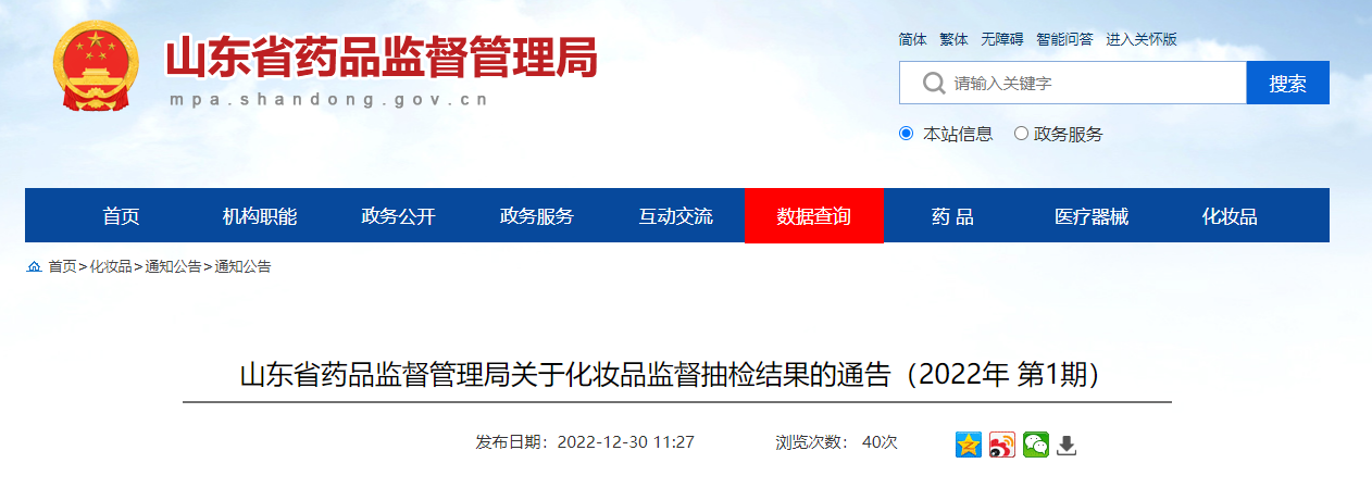 中國質量新聞網(wǎng)訊 2022年12月30日,山東省藥品監(jiān)督管理局網(wǎng)站發(fā)布關于化妝品監(jiān)督抽檢結果的通告(2022年 第1期)。通告稱,為加強化妝品質量監(jiān)管,保障公眾健康,該局組織開展了全省化妝品監(jiān)督抽檢,涉及染發(fā)類、燙發(fā)類、一般護膚類、香水類、美白祛斑類、面膜類、防曬類等化妝品。經(jīng)檢驗,發(fā)現(xiàn)檢驗項目符合規(guī)定1082批次,不合格18批次。