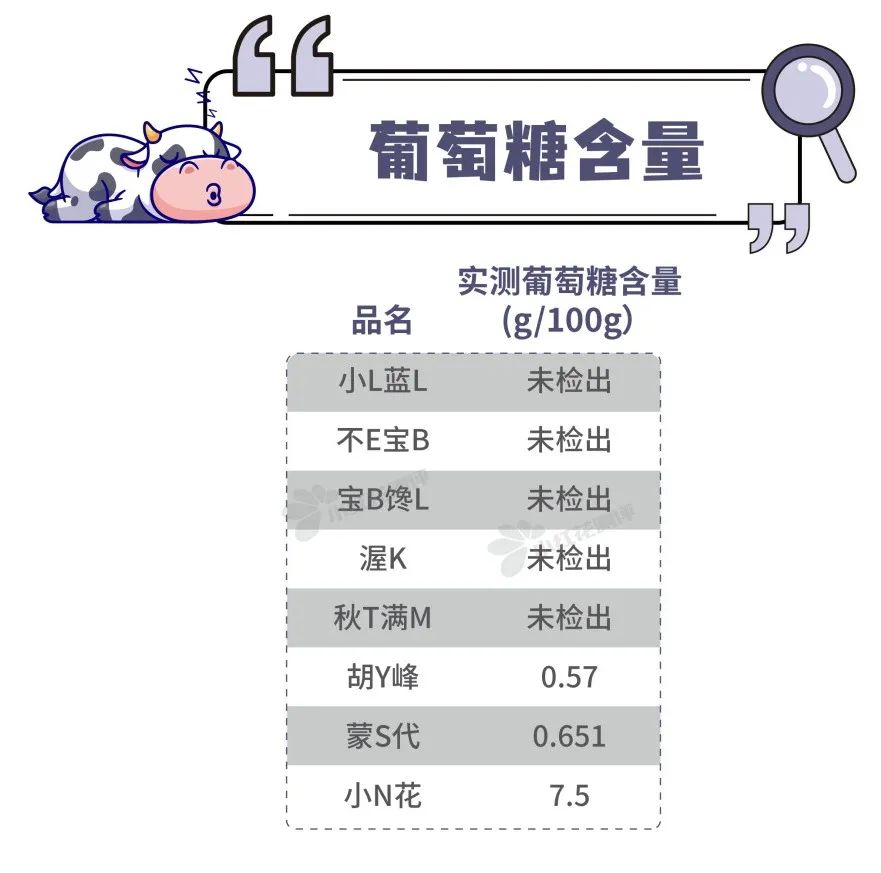 蒙S代、小N花、胡Y峰奶片三款檢出葡萄糖,其余均未檢出。