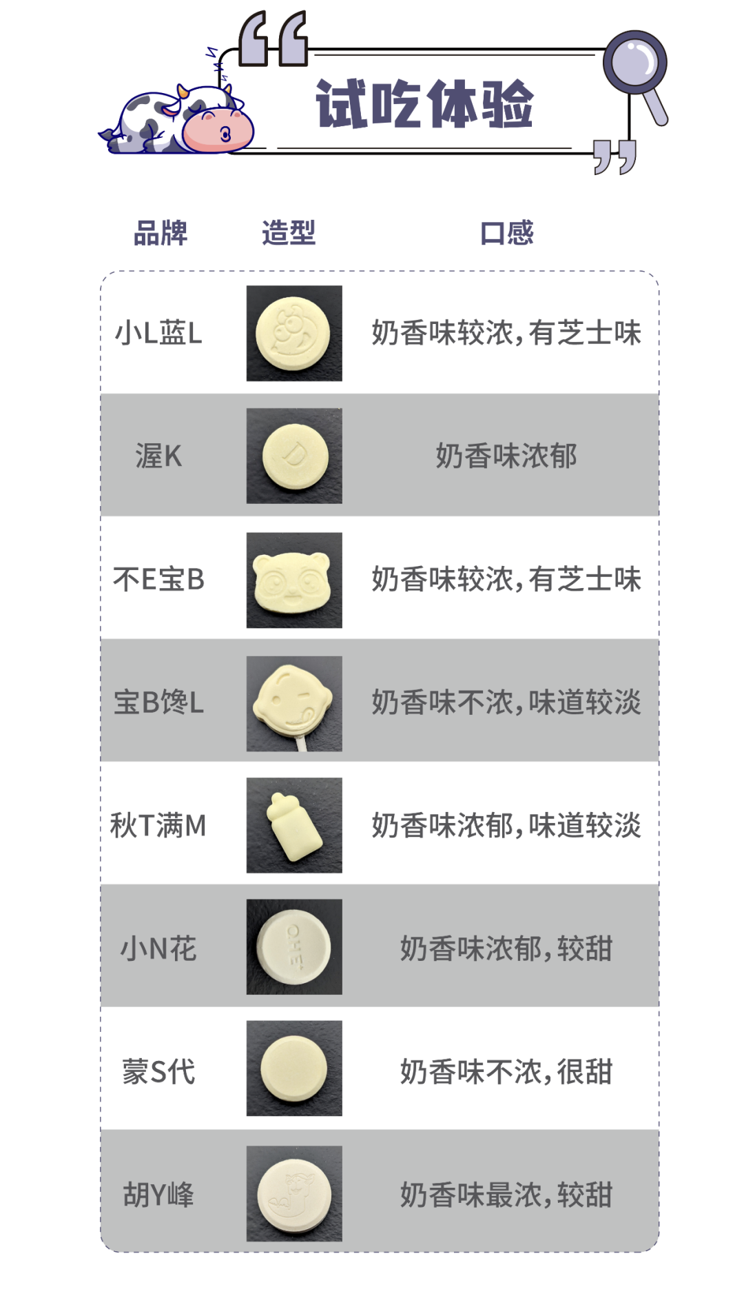 試吃體驗(yàn)花爸請(qǐng)辦公室同事試吃了8款奶片,并對(duì)它們的味道進(jìn)行評(píng)價(jià),總結(jié)如下: