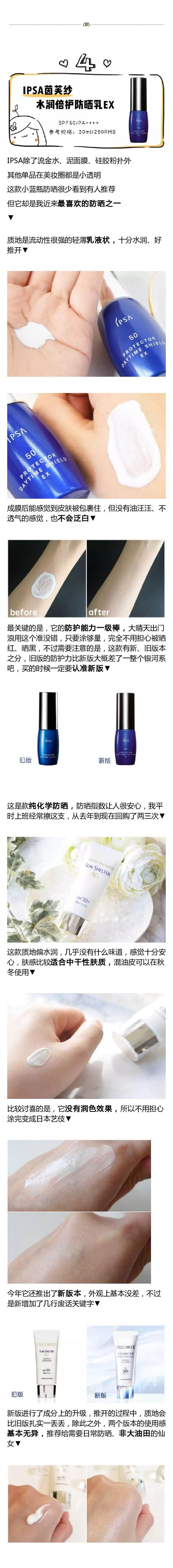 它的質(zhì)地是真的水,抹開稍微按摩一下就被皮膚完全吸收了,瞬間感覺皮膚潤潤的,但是是潤而不油,真的清爽,同時也不會覺得拔干,沒有搓泥、泛白的狀況哦~~這款防曬對于我這個混油皮來說完全沒負(fù)擔(dān),不悶痘!真的棒!