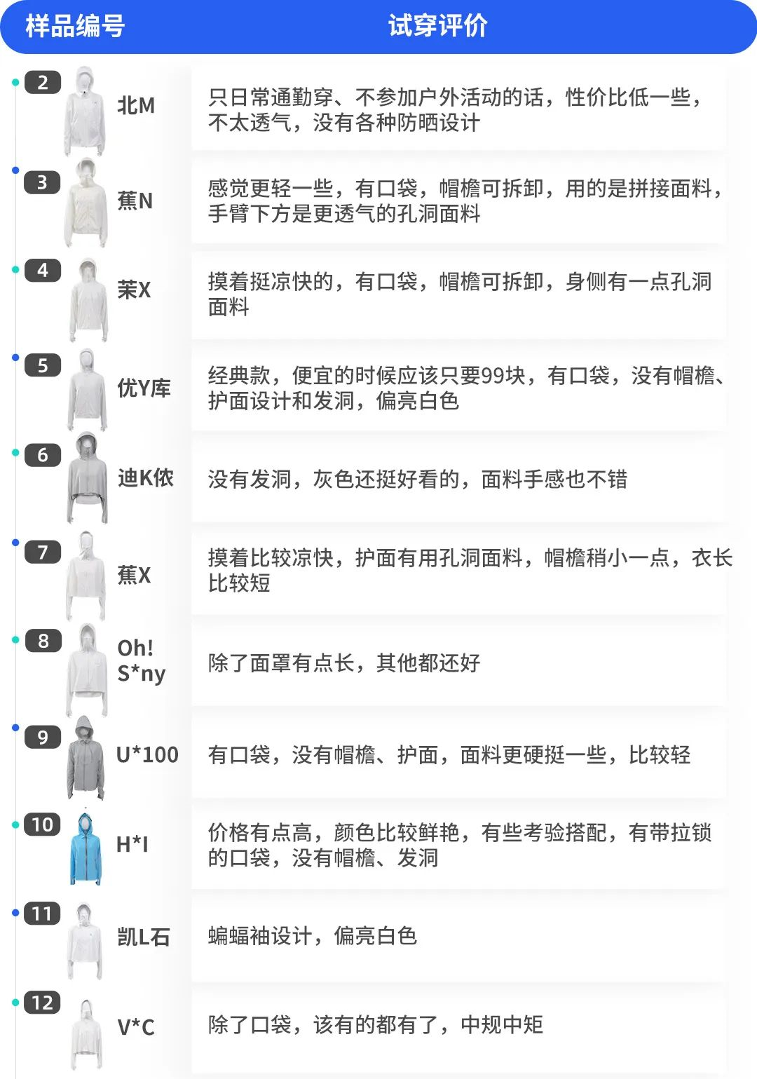 一個彩蛋:相比差異不大的實驗室數(shù)據(jù),很多姐妹更看重防曬衣的細節(jié),我們也特意選了 5 位小伙伴,在炎熱的天臺試穿了 11 件防曬衣,總結(jié)了她們的真實感受。