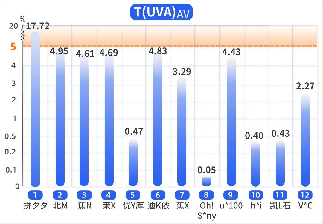 參照GB/T 18830-2009《紡織品 防紫外線性能的評定》,除了 2 號和 6 號,在 UVA 平均透射比方面未達標,其余 9 款,都能達到防曬要求。