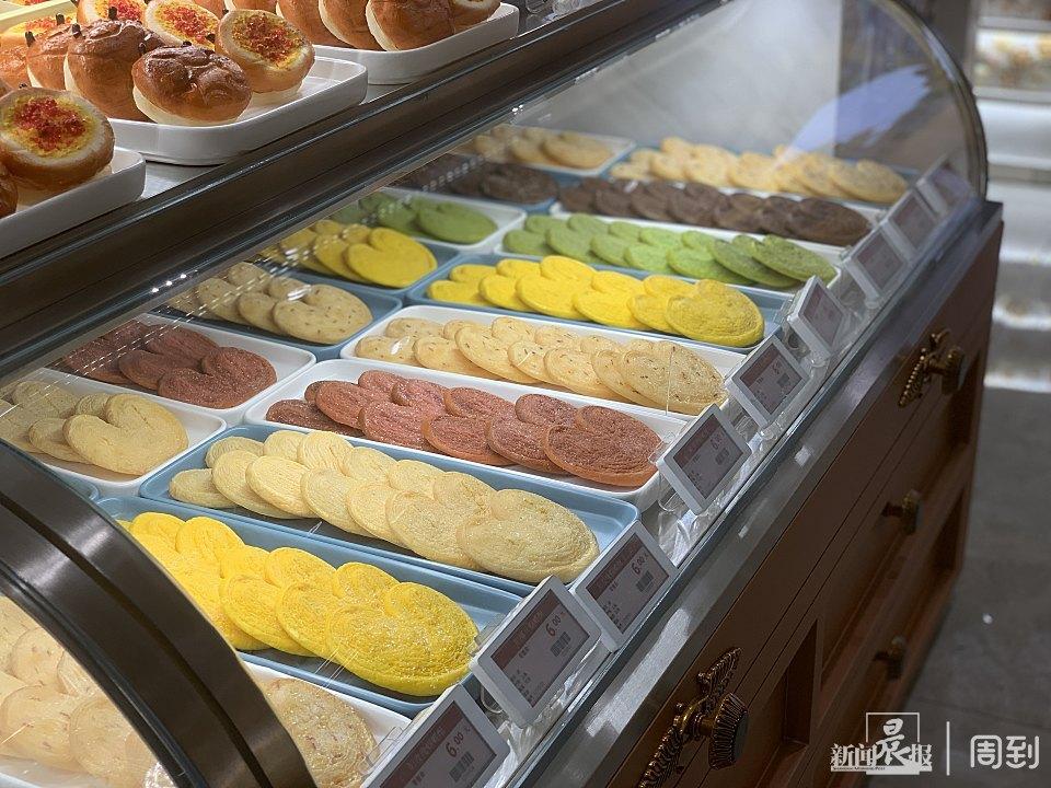 又比如這款新品“蟹黃酥”,原料為蟹黃、魚子,配上稍許的醋和姜,給顧客一種吃蟹的感覺,“上海人本來就喜歡吃蟹,我們也是迎合他們的喜好,進行創(chuàng)新。”店長解釋道;“七色蝴蝶酥”也是新店,相較于老店只有原味蝴蝶酥,新增了玫瑰、椰絲、蛋黃、蔥香、抹茶、巧克力等六個口味的蝴蝶酥,不僅好看,且味型更豐富。
