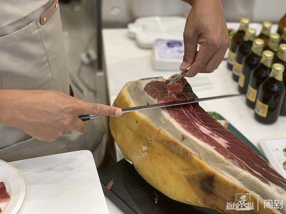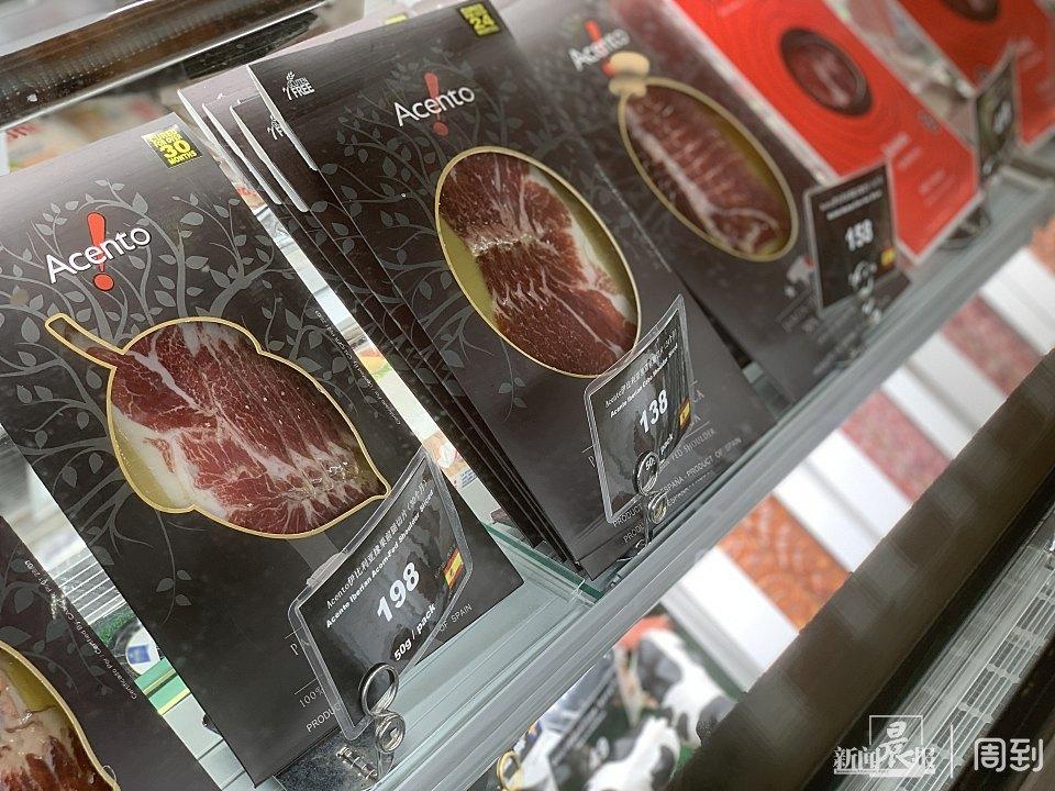 售價1014元一斤的西班牙進口黑毛豬火腿是店里的,不少顧客在體驗過其風味后,都已成為“回頭客”,“味道跟國內(nèi)火腿不一樣,它的肉質(zhì)更緊實,香味更濃郁?!鳖櫩屠钕壬f道。