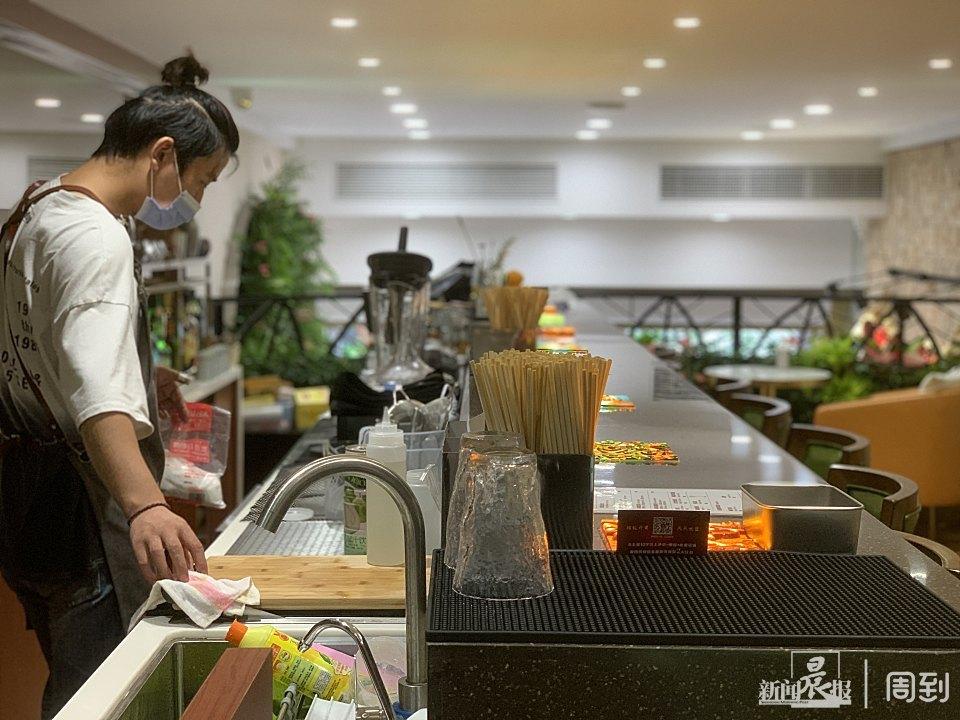 二樓迷你酒吧的調(diào)酒師張洛閣告訴記者,自9月7日試營業(yè)以來,顧客人數(shù)整體呈上升趨勢,“很多上來的顧客都是在下面點上一盤火腿,再上來點一杯酒?!睋?jù)張洛閣介紹,二樓酒吧主要的顧客為年輕群體,其中又以晚上的生意更好,“每天晚上9點會有一波高峰。很多年輕顧客逛完外灘,來這里切上一盤火腿,喝上一杯?!?/p>