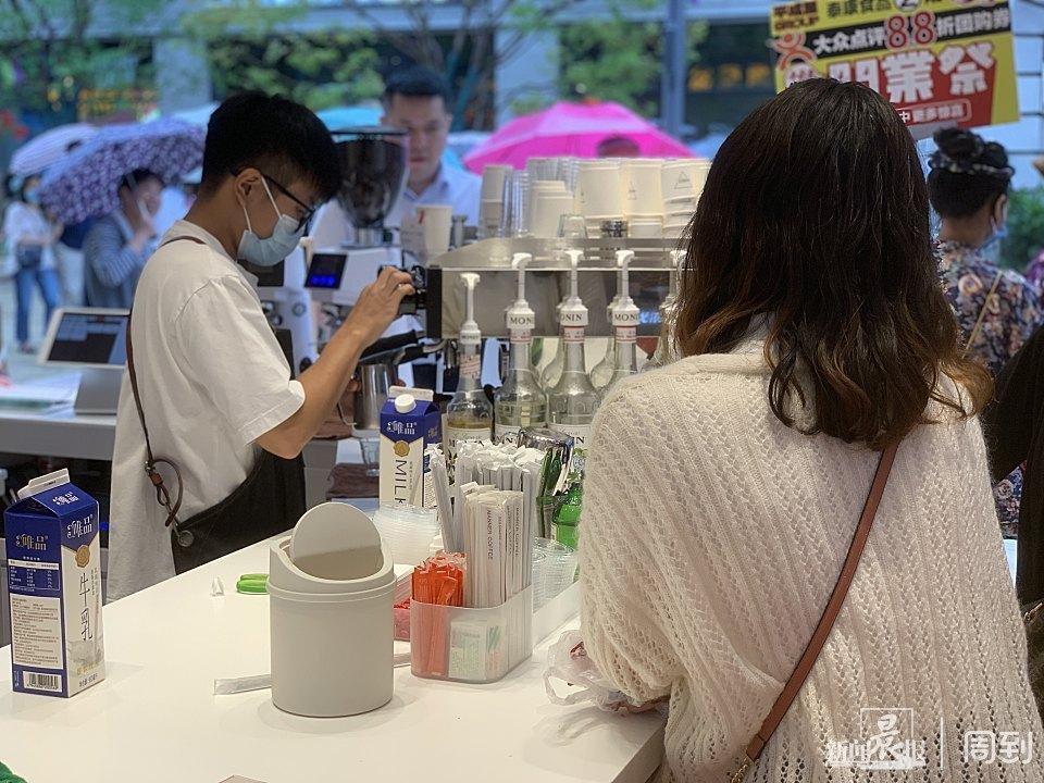 ■泰康食品優(yōu)選店內(nèi)正在購買咖啡的顧客