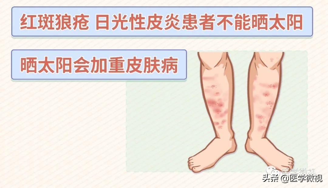 后提醒一點,如果自身存在紅斑狼瘡、日光性皮炎等皮膚病,或正在服用一些容易引起皮膚光敏感的藥物,比如四環(huán)素類、磺胺類藥物等,則應(yīng)該盡量避免日曬,以防病情加重。