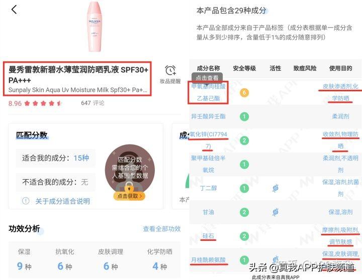 從真我APP查詢的成分來(lái)看,這款產(chǎn)品兼具化學(xué)防曬和物理防曬,四種化學(xué)防曬劑,性很高。物理防曬采用的是氧化鋅,不會(huì)出現(xiàn)泛白現(xiàn)象。
